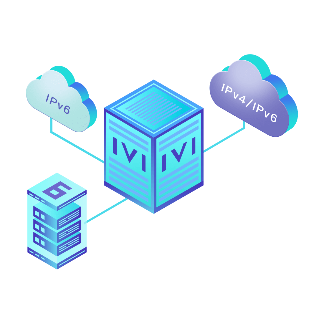 對(duì)正在進(jìn)行IPv6整體升級(jí)規(guī)劃的運(yùn)營商,應(yīng)用IPv6升級(jí)方案2.5,通過IVI無狀態(tài)翻譯技術(shù)和純IPv6接入網(wǎng)絡(luò),為雙??蛻舳撕碗p棧服務(wù)器提供連通服務(wù)。